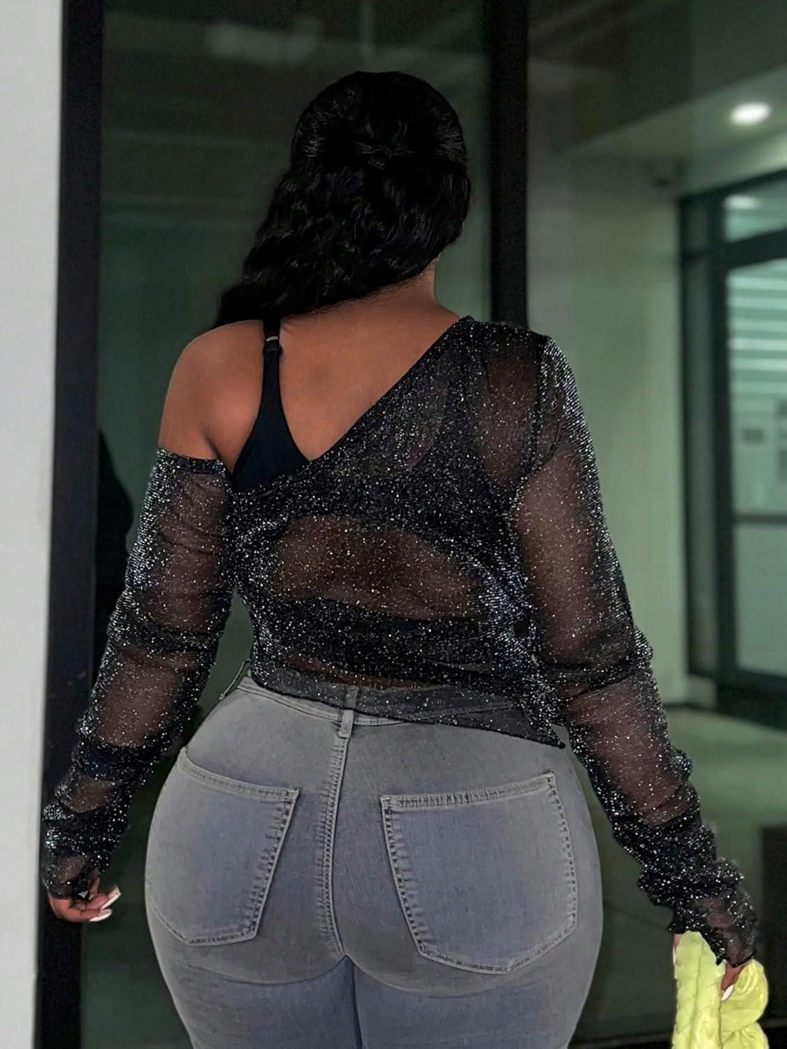 This sheer, off-the-shoulder long sleeve tee is a bold choice for those who want to infuse a bit of sparkle and sexiness into ⁣their⁣ wardrobe without sacrificing comfort. The lightweight fabric and subtle transparency make it ‌perfect for layering or wearing on its own during warm evenings or club nights.While it’s tailored for plus sizes, its‌ design and fit provide a flattering silhouette, enhancing⁢ confidence for anyone looking to showcase a daring ‍yet⁤ elegant‍ look.