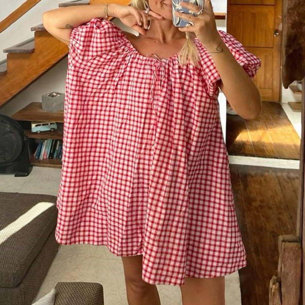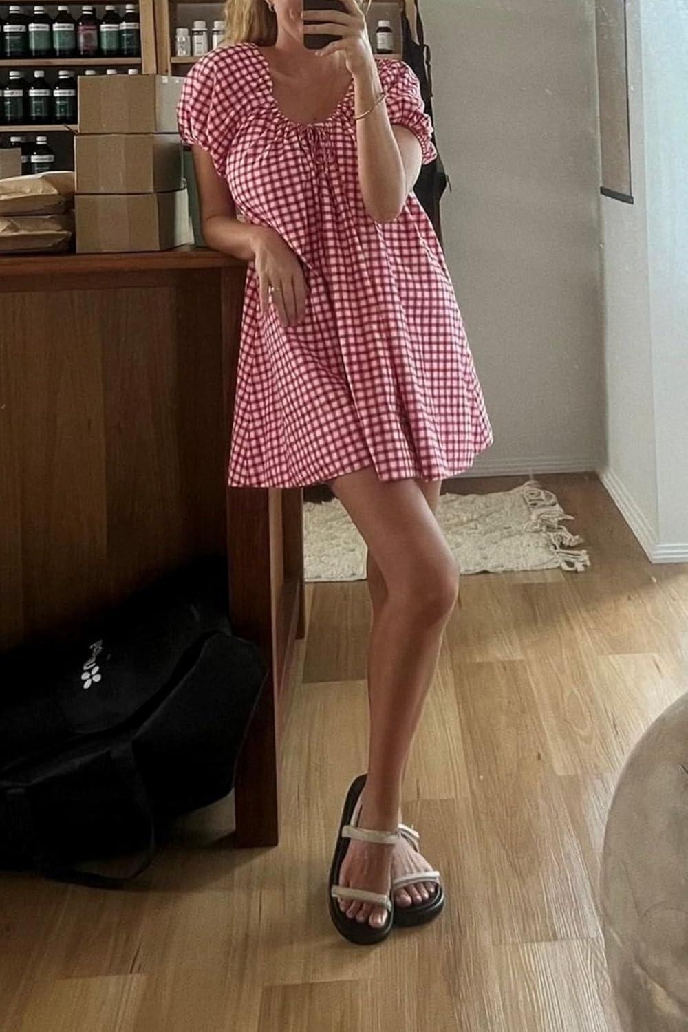The gingham pattern featured in this dress carries an undeniable vintage charm that instantly transports us back to classic summer picnics and carefree afternoons. Its distinctive checkered design is both timeless and playful, perfectly complementing the dress’s babydoll silhouette. The short puff sleeves and square neckline enhance the nostalgic feel, adding a touch of romance that blends effortlessly with the loose, flowing fit. This combination makes the dress a versatile piece that feels fresh yet rooted in retro aesthetics, appealing to those who appreciate styles with a story.