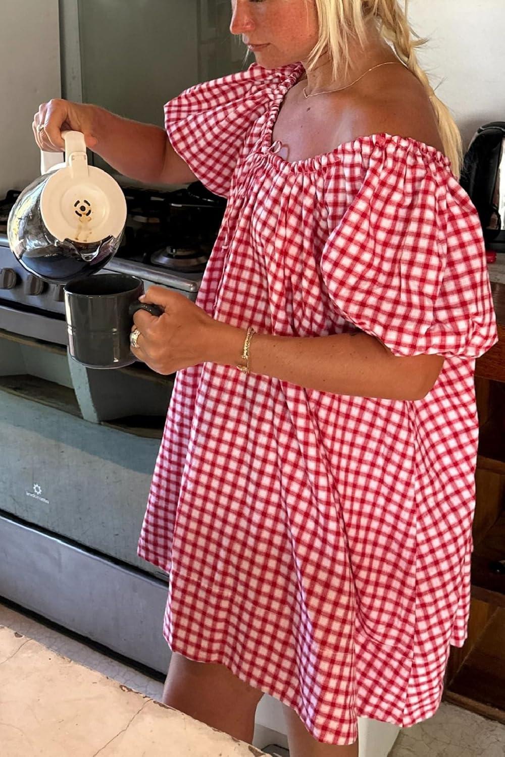 This dress is a wonderful choice for various casual and semi-casual occasions, thanks to its playful yet elegant Y2K-inspired design.The loose fit and puff sleeves offer a breezy comfort that suits summer picnics, casual brunches, or garden parties where you want to feel light and effortlessly stylish. The gingham and floral patterns add a nostalgic charm ideal for daytime outings, while the square neckline provides a flattering frame that pairs beautifully with simple accessories. Its mini length and babydoll silhouette make it a fun, youthful pick when you want to make a subtle statement without sacrificing comfort.