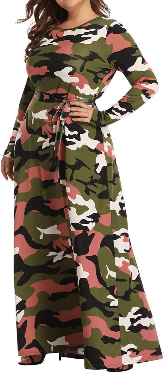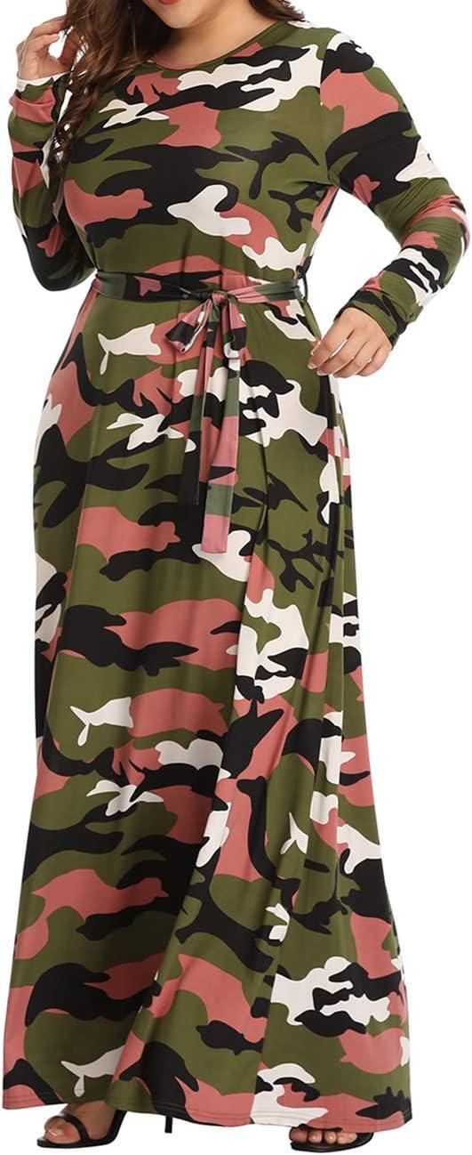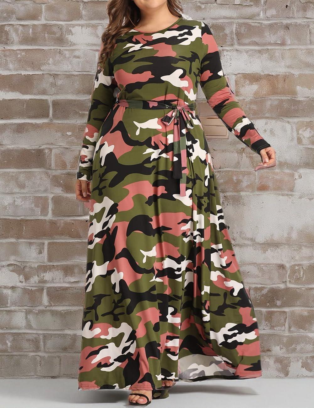 This maxi dress blends comfort with style perfectly, designed especially for curvy women seeking a flattering yet practical outfit. Crafted from a soft, stretchy blend of 95% polyester and 5% spandex, it offers excellent elasticity while maintaining its shape throughout the day. The camouflage print brings a casual edge, while the long sleeves and adjustable waistband create a slimming silhouette that enhances natural curves. Its oversized cut and standard American sizing make it accessible for most plus sizes without compromising on fit or comfort. Whether attending a casual party, a club gathering, or simply lounging at home, this dress adapts seamlessly to various occasions.
