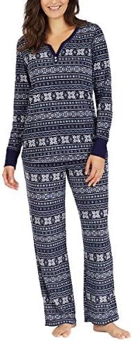 This two-piece sleepwear ensemble offers a delightful combination of comfort and style. Crafted from soft fleece, it is designed to keep you warm during chilly nights, while the charming Navy Fair Isle pattern adds a touch of elegance. The set includes a long-sleeve top and matching pants, providing a relaxed fit that accommodates a range of body types, including XX-Large sizes. Weighing approximately 1.9 pounds, the lightweight material makes it easy to wear and move around in, whether you’re lounging at home or getting into bed.