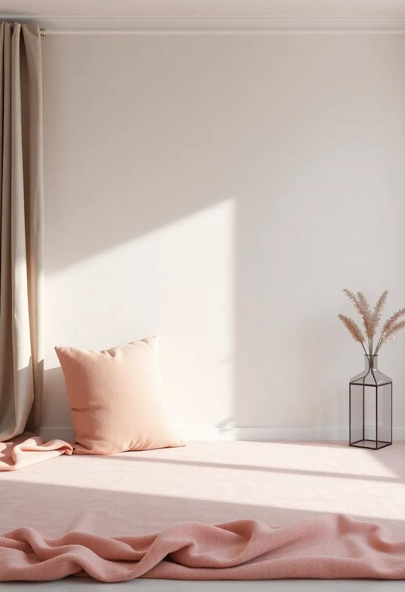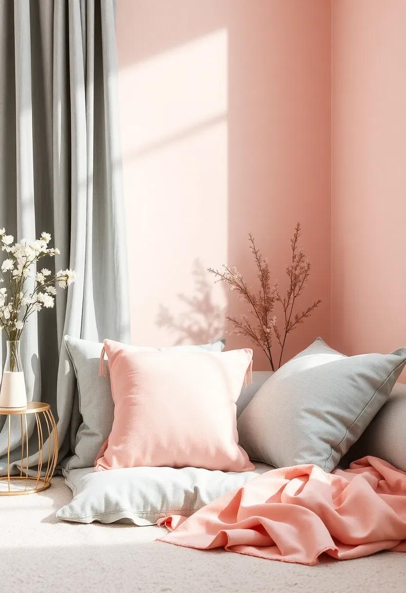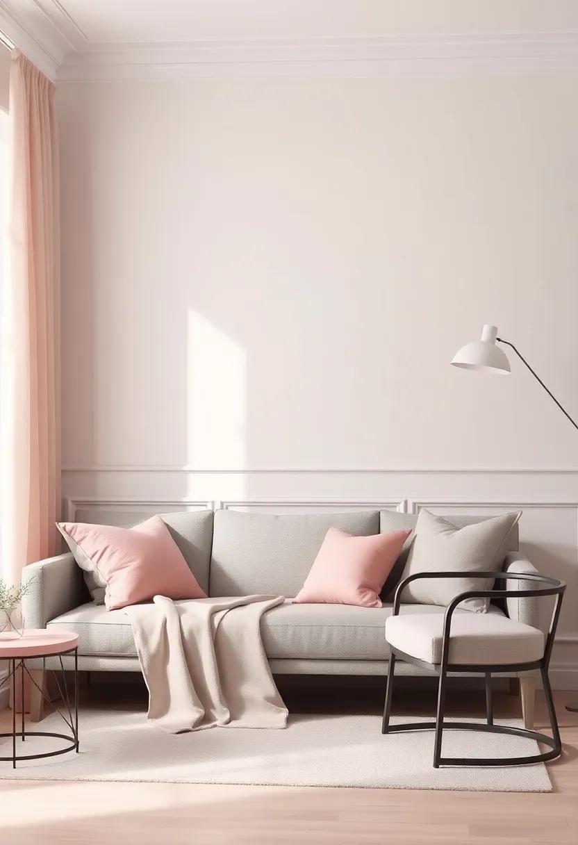 • Soft ⁣furnishings: Opt for plush throw pillows and​ blankets ‍in⁢ blush ‍pink,complemented by ⁢a cozy silver-gray sofa.