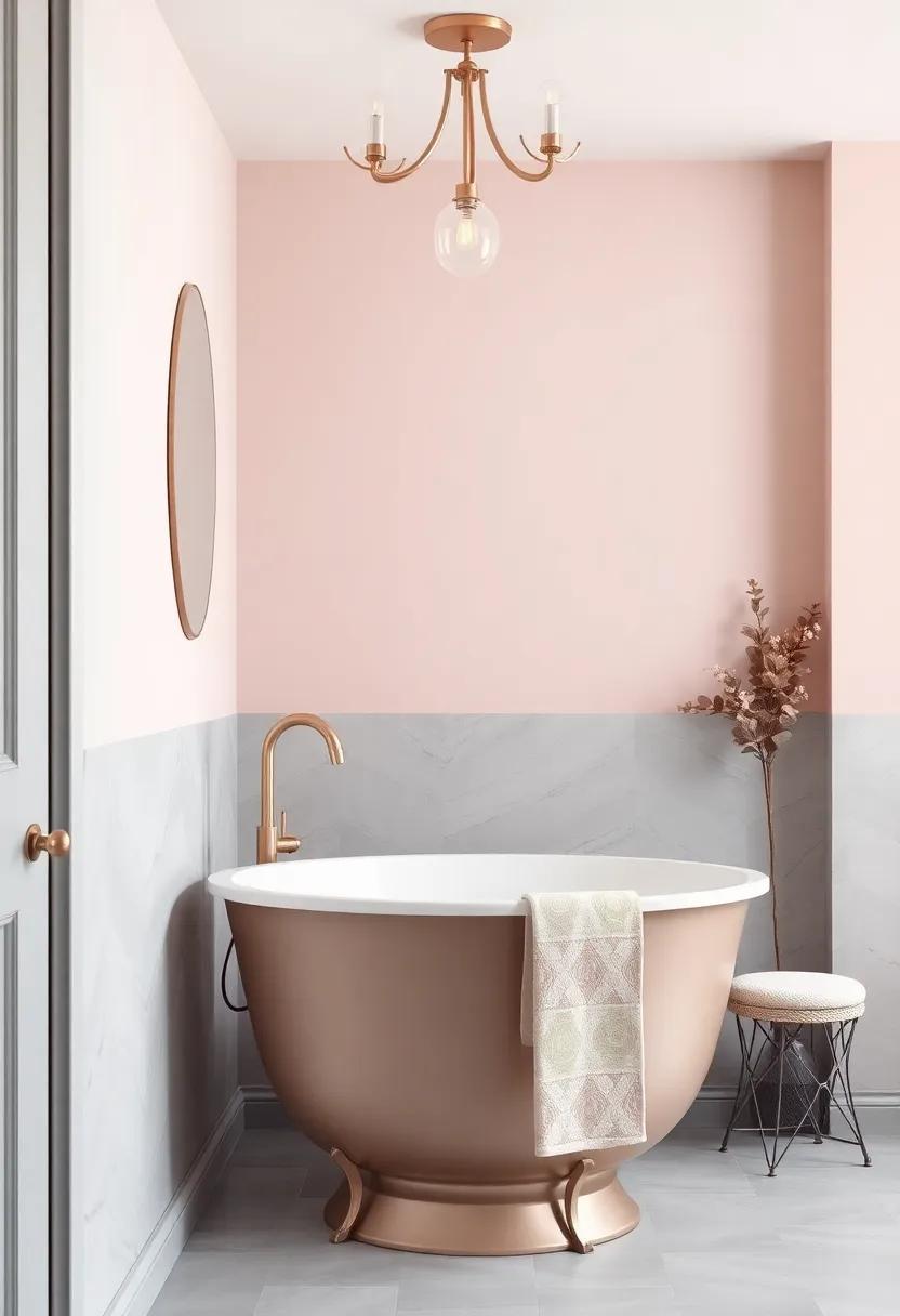 To create a tranquil atmosphere ​in your‍ bathroom, consider incorporating soft‍ color combinations that evoke a sense of ⁤calm. The pairing of elegant ⁢ silver-gray and delicate blush pink can ⁤transform⁢ even the smallest of spaces ‍into a luxurious retreat. Use a silver-gray palette for ‍your walls and fixtures, giving ⁢the room a⁤ sophisticated base.​ It ‍serves as an ⁢excellent backdrop for the ‍soft blush pink accents, whether​ through ⁣towels, ⁢bath mats, or ‌decorative items. Accentuating this ‌color ‌scheme‌ with natural materials ‍such as ‍wood or stone ‌can enhance the serene vibe,‍ fostering a connection to nature ‍while⁣ maintaining an airy⁤ feel.