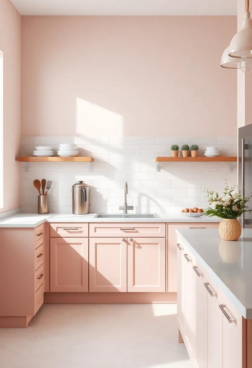 Introducing blush pink into your‌ kitchen ‌can transform the space ​into⁢ a cozy haven ‍filled‍ with personality. ⁤Start by considering ‍ soft ⁢accents that create a gentle⁢ touch without overwhelming the​ existing decor. For instance, ‍you can opt for a blush ⁣pink backsplash or subtle​ wall decals that add a hint of color. Complement these‍ with accessories like table‌ linens, dishware, ‌or glassware featuring the⁤ delicate‍ hue, allowing ⁣for easy updates that can be changed with the seasons. Incorporating natural elements such as potted herbs or fresh flowers ⁢in blush tones ‌also⁢ enhances the ‍warmth of the space and invites ⁤a fresh, organic vibe.
