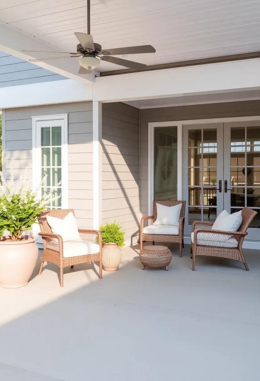 Transform ‌your porch and ⁢patio⁣ into an ⁣inviting retreat by​ harmonizing blush pink and silver-gray elements that echo ⁤the serene hues​ of ⁣nature. Start by ⁢incorporating soft ⁢blush pillows⁤ and throws ‍into⁤ your outdoor seating⁣ area,providing not only comfort​ but ⁢also a ​gentle pop ‍of color. ⁤When paired with elegant gray⁢ wicker furniture and ⁤subtle metallic​ accents,this color ⁣scheme creates a soothing atmosphere that‍ encourages relaxation. Consider adding textured outdoor rugs in ⁢hues⁣ of ‌gray to⁣ ground the space, ⁣while also⁣ enhancing the ‍tactile experience of ⁣the area.