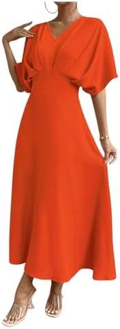 Floerns Women’s V Neck Half Sleeve Ruched Cocktail Evening A Line Long Dress