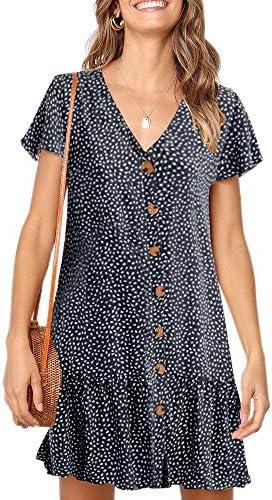 This delightful mini dress combines soft and breathable fabric with eye-catching polka dots or solid color options. Its classic v-neck design, short sleeves, and loose fit create an effortlessly casual yet fashionable look, making it perfect for a variety of summer occasions. The ruffled hem adds a touch of femininity while the button-down feature allows for easy wear. Whether you’re enjoying a sunny outdoor brunch or a relaxed indoor gathering, this dress is sure to keep you cool and comfortable.