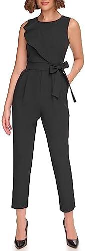 This sophisticated jumpsuit combines a stylish crepe fabric with a flattering rosette bodice design, making it an excellent choice for cocktail events or parties. The sleeveless crew neck style adds a modern twist, allowing for ease of movement and a chic silhouette. With its lightweight construction weighing just 1.1 pounds, this outfit offers comfort without compromising on elegance. The attention to detail in the design emphasizes both femininity and style, ideal for those looking to make a statement.