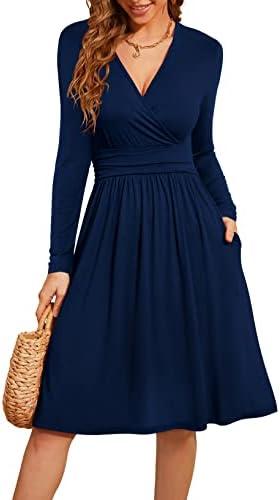 WEACZZY Women’s 2025 Fall Long Sleeve Casual Dresses V-Neck Semi Formal Party Dress with Pockets