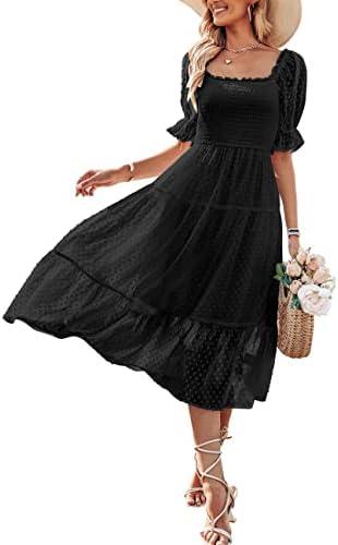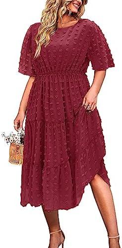 This charming midi dress is crafted from a soft and comfortable polyester blend, drawing inspiration from classic swiss dot patterns. The short sleeves and high waist design accentuate the A-line silhouette, providing a flattering fit that drapes beautifully. With its ruffle tiered detail, it makes for a stylish option suitable for various occasions, be it a casual day out, a wedding, or a cocktail party. The fully lined body ensures that you won’t have to worry about transparency, while the lightweight chiffon fabric offers breathability for warm weather.