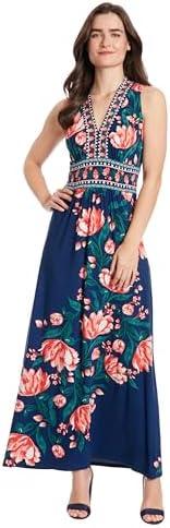 London Times Sleeveless V-Neck Maxi Casual Dresses for Women