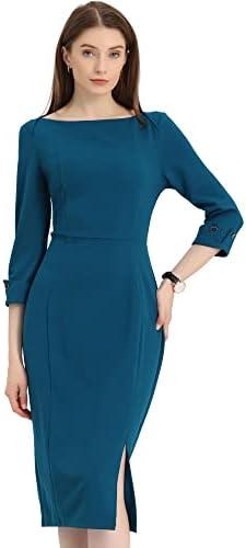 Allegra K Women’s Elegant Boat Neck 3/4 Sleeves 2024 Wear to Work Midi Split Sheath Dress