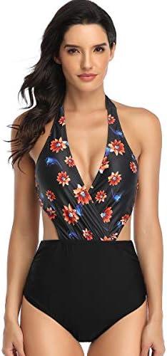 Women’s One Piece Swimsuit High Neck Plunge Bathing Suit Tummy Control Swimwear