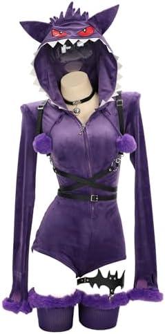 MEOWCOS Women Bodysuit Onesie Pajamas Romper Bodysuit Plush Hooded and Socks with Belt and Tail