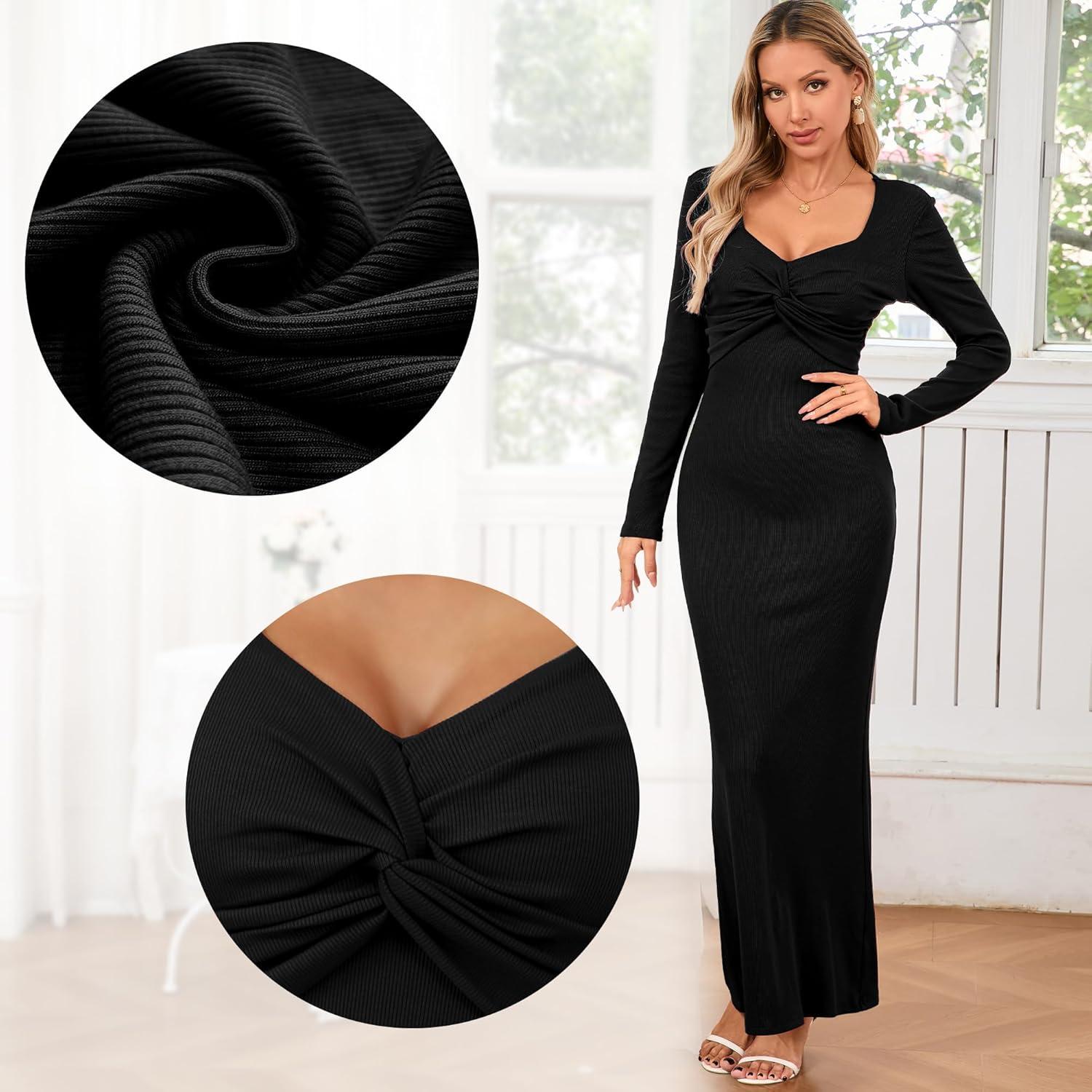 When it comes to combining elegance with ease of movement, this dress truly stands out. The long sleeves and ribbed bodycon fabric offer a snug yet flexible fit, hugging our curves without feeling restrictive. The square neck and twist-front details add a modern touch, while the maxi length ensures graceful coverage. Throughout an entire event, we noticed that the dress allowed for a comfortable range of motion-whether sitting at a formal dinner or mingling on the dance floor, it never felt tight or confining.