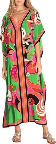 Cashew Flower Silk Caftan Women Vneck Swim Cover up Caftans Kaftan for Women