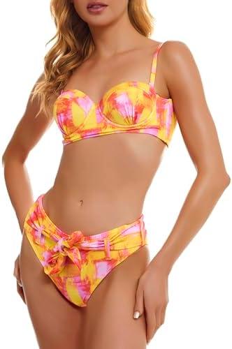 This lively and stylish two-piece swimwear ensemble is designed to make a statement on the beach or poolside, featuring a stunning mix of vibrant shades like yellow, pink, and orange. The supportive bra top not only adds lift but also enhances your natural shape, providing a flattering fit for various body types. Meanwhile, the high-waisted bottoms boast a trendy front tie detail, delivering both elegance and ample coverage. Made from a lightweight and stretchy fabric blend, it assures comfort during any water activity, whether you’re diving into the waves or lounging under the sun.