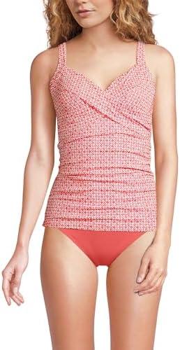 Lands’ End Womens Chlorine Resistant Underwire Wrap Tankini Top Living Coral Geo Regular 16