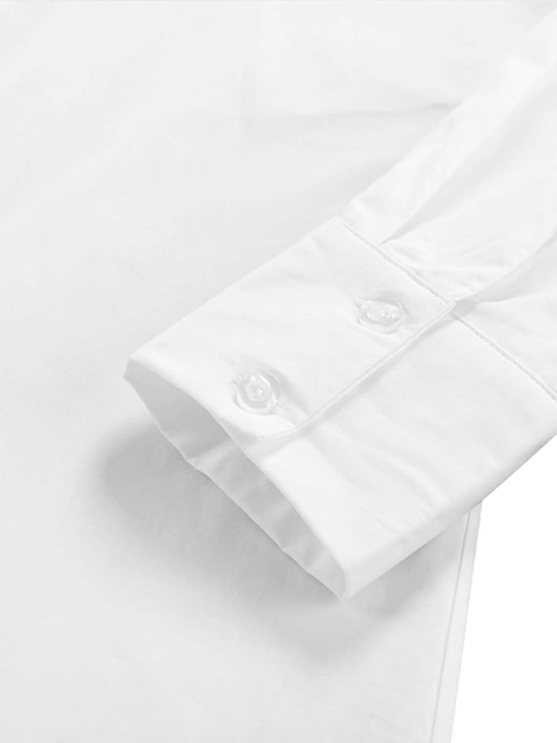 the collar and V neck design play a pivotal role in defining the elegant yet casual vibe of this dress. The crisp shirt collar adds a structured frame to the neckline, bringing a touch of formality that balances out the otherwise relaxed silhouette. Simultaneously occurring, the V neck softens the overall look by elongating the neck and adding a subtle hint of allure without being overly revealing. Together, they create a flattering neckline that suits various body shapes, perfect for those who want a blend of sophistication and ease in their everyday attire.