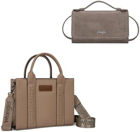 Wrangler 2Pcs Handbags Set Medium Tote Bag and Clutch Wallets Top-handle Purses with Strap