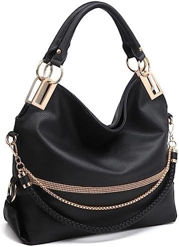 Chic Hobo Handbag with Vegan Leather and Rhinestones