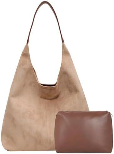 This elegant shoulder bag combines a classic vintage design with modern practicality, crafted from high-quality vegan suede leather that gives it a trendy and luxurious appeal. With dimensions of 14.17 x 12.2 x 5.12 inches, it features a large capacity to accommodate your essentials, making it ideal for various occasions such as work, shopping, or casual outings. The bag is lightweight and easy to carry, ensuring comfort throughout the day. Furthermore, the delicate magnetic snap closure keeps your belongings secure, allowing you to focus on your activities without worry.