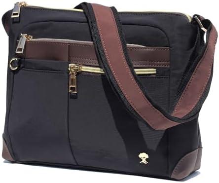 This handbag combines water-resistant nylon and leather, ensuring that your essentials are protected from the elements while remaining stylish. The top double zipper closure secures your belongings, making it easy to access your items without compromising on safety. Its adjustable shoulder straps allow for versatile wear—whether you prefer it as a handbag, a single-shoulder bag, or a crossbody fashion statement. With dimensions of 30 x 24 x 6.5 cm, this lightweight bag weighs just 0.6 pounds, making it a practical choice for daily activities like shopping, traveling, and business meetings.