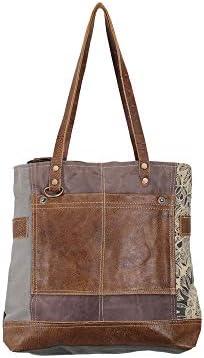 Myra Bags Side Floral Print Upcycled Canvas Tote Bag S-0915, Tan, Khaki, Brown, One_Size