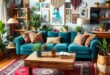 A vibrant area rug can serve as a striking centerpiece, tying together your movie room’s design while adding warmth and texture reminiscent of classic Hollywood glamour.