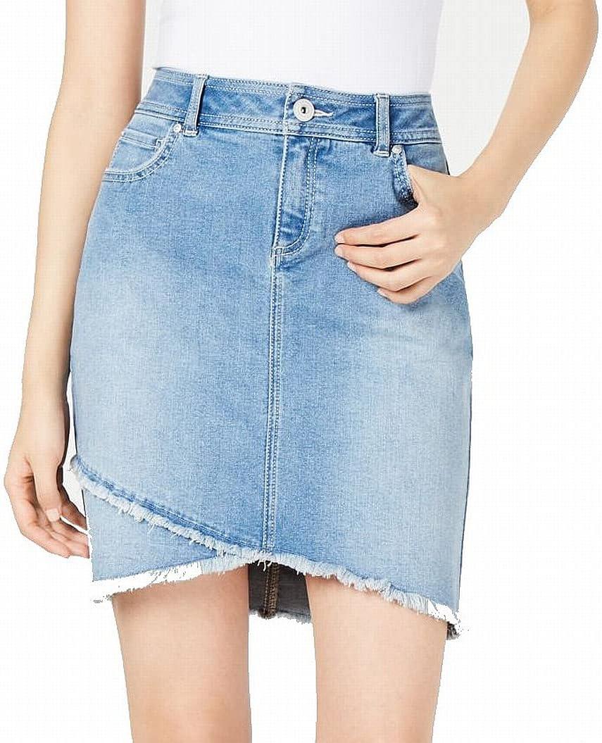INC International Concepts Women’s Destructed Fray-Trim Denim Skirt