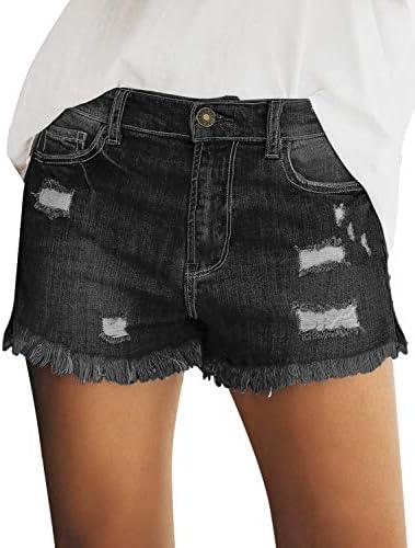 Summer Jean Shorts for Women Casual Mid Rise Raw Hem Ripped Patched Jeans Distressed Denim Shorts