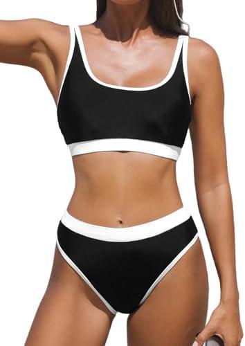This stylish two-piece swimsuit showcases an engaging combination of contrast splicing and a cheeky fit, perfect for the fun-loving beachgoer. Its stylish scoop neck design offers a flattering silhouette, while the adjustable straps ensure a customized fit that provides both comfort and support. Crafted from high-quality materials, this bathing suit emphasizes quality and durability. Whether lounging by the pool or taking a dip in the ocean, this low-maintenance swimwear is sure to keep you looking vibrant and comfortable all day.