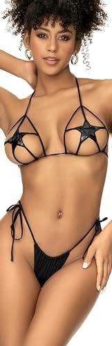 Women’s Embellished Bikini Bra and Tie-Side Panty Lingerie Set, Black, Free Size