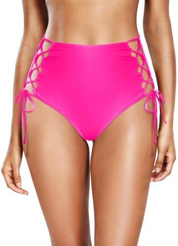 Holipick Women High Waisted Bikini Bottoms Tummy Control Swimsuit Bottoms Strappy Swim Bottom
