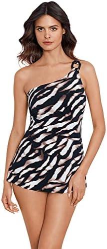 This stylish swim dress offers allover slimming and shaping benefits, perfect for creating a flattering silhouette at the beach or poolside. Equipped with removable soft cups, it allows for customized support, enhancing comfort during wear. The adjustable side tie adds versatility, letting you choose between a more modest fit or an increased level of bottom coverage according to your preference. With dimensions of 10 x 8.55 x 2.85 inches and a lightweight design at 11.53 ounces, this piece is both easy to wear and pack, making it a great addition to your swimwear collection.