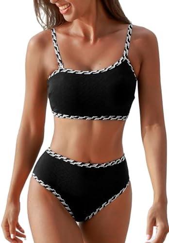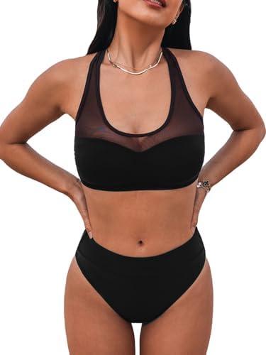 CUPSHE Women’s Bikini Sets Two Piece Swimsuit High Waisted Scoop Neck Racerback Mesh Wide Straps