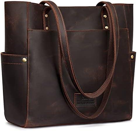 S-ZONE Genuine Leather Tote Bag Large Shoulder Purse Work Vintage Handbag for Women