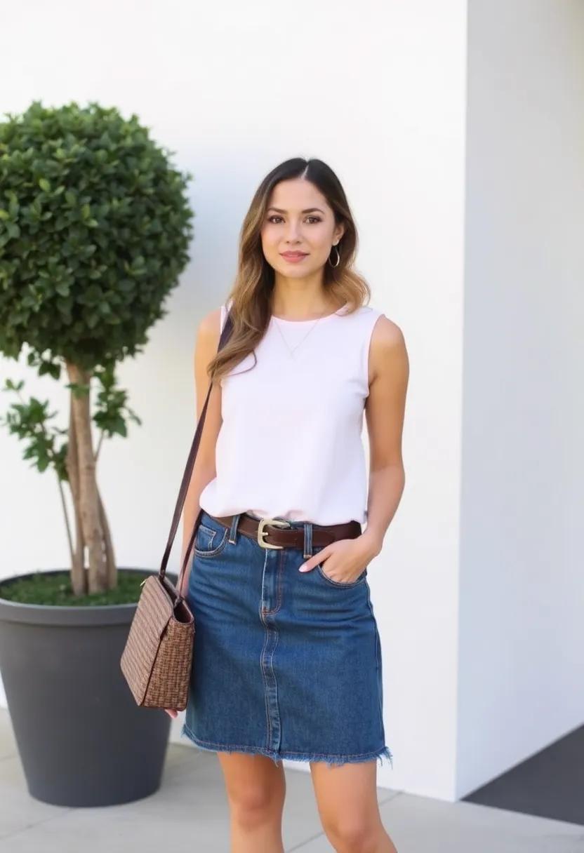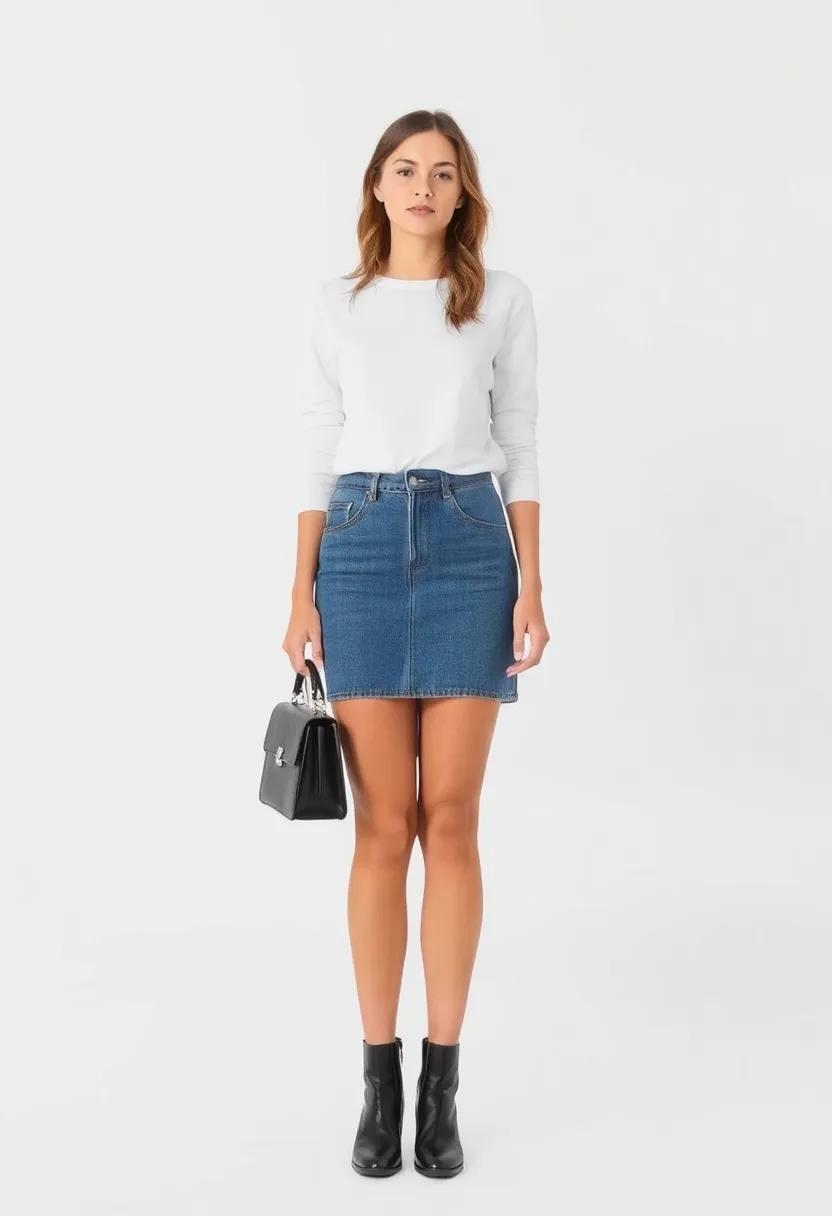 When it comes to elevating your jean skirt game, timeless classics can work wonders. A tailored white button-up shirt is the epitome of elegance that pairs beautifully with a denim skirt, offering a chic juxtaposition of casual and refined.You can enhance this look with a vibrant statement belt, which not only adds color but also defines your waist, creating a flattering silhouette. Pair it with ankle boots for a trendy yet comfortable vibe, perfect for an outing on Valentine’s Day.