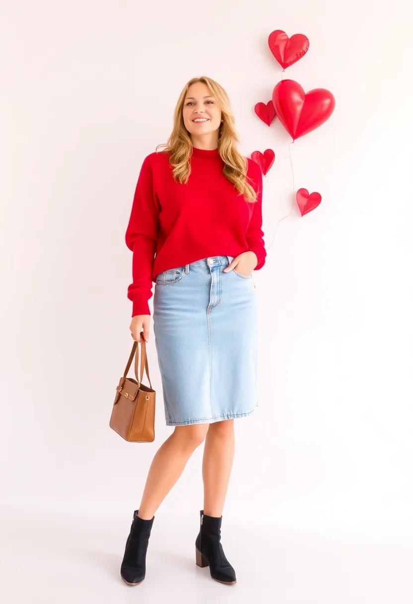 For those looking to break away from traditional Valentine’s Day attire, a jean skirt offers the ideal foundation for an effortlessly stylish outfit. Picture this: a classic mid-length skirt paired with a lightweight, floral blouse that introduces a pop of romance. By layering with a soft, oversized cardigan, you can elevate the look while ensuring warmth during a cozy evening. Accessorize with chunky ankle boots for a chic edge or switch to ballet flats for a softer touch. Don’t forget to finish off with delicate jewelry that adds just a hint of sparkle, perfectly accentuating your style without overshadowing it.