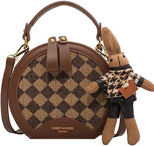 This stylish small tote combines a trendy retro quilted design with practicality, making it an ideal accessory for women on the go. Made from faux leather, it is both animal-friendly and comfortable to carry. Spacious enough to hold essentials like mobile phones, keys, sunglasses, and cards, it features a large main compartment for easy organization. Its delightful bunny doll pendant adds a playful touch, making it a charming addition to your wardrobe. With a size of 5.70″x3.35″x6.50″, it’s compact yet capable of storing all of your must-have items.