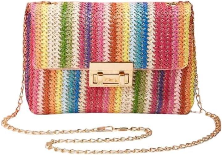 This stylish and compact clutch is designed for women who appreciate both functionality and flair. With dimensions of 8 x 5.5 x 1.2 inches and weighing only 4.48 ounces, it is lightweight and easy to carry, making it an ideal accessory for summer outings, beach trips, or casual evenings. Crafted from colorful woven straw, this purse features a vibrant striped pattern that adds a touch of fun to any outfit. The crossbody design and shoulder bag capability allow for versatile wearing options, ensuring your hands are free to enjoy your day.