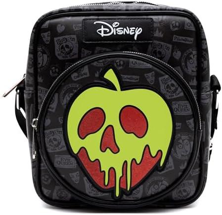 The enchanting crossbody bag is crafted from high-quality vegan leather, making it an excellent option for eco-conscious Disney enthusiasts. With its well-thought-out design, featuring both front and back zip pockets, it provides ample storage that ensures easy access to your essentials while keeping them organized. The striking black color is adorned with a glow-in-the-dark apple and Evil Queen icons, allowing you to embrace your favorite Disney villain in a stylish and modern way. At 8., it strikes the perfect balance between compactness and functionality, making it an ideal accessory for daily outings or special occasions.