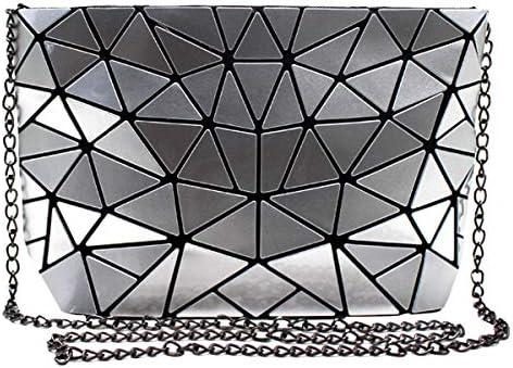 This eye-catching evening clutch offers a unique geometric design that shines with a luminous holographic finish, making it a standout accessory for any outfit. Its versatile nature allows it to be worn as a shoulder bag or crossbody, providing effortless transition from formal events to casual outings. The compact dimensions of 1 x 1 x 1 inches ensure it’s lightweight while still providing enough space for evening essentials like your phone, cards, and makeup. Crafted with attention to detail, this handbag is designed to make you feel chic and stylish.
