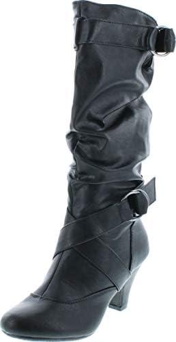 Forever Link Maggie-39 Women’s Fashion Low Heel Zipper Slouchy Mid-Calf Boots Shoes