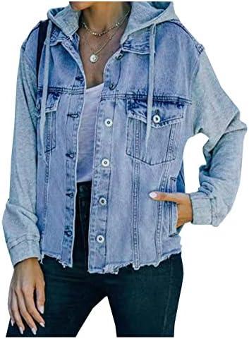 LifeShe Women’s denim jacket with hood ripped distressed jean jackets hoodie