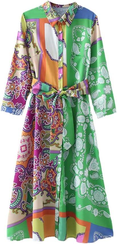 This stylish midi shirt dress features a unique patchwork design in a floral print, making it a fantastic addition to any woman’s wardrobe. With its single-breasted closure and classic turn-down collar, it effortlessly blends a sense of elegance and casual comfort. The A-line silhouette flatters various body types, while the three-quarter sleeves add a touch of sophistication. Made from soft flannel fabric, it is suitable for the spring and autumn seasons, ensuring a cozy fit without compromising on style. The included belt enhances the waistline, providing a tailored look perfect for both office settings and social outings.