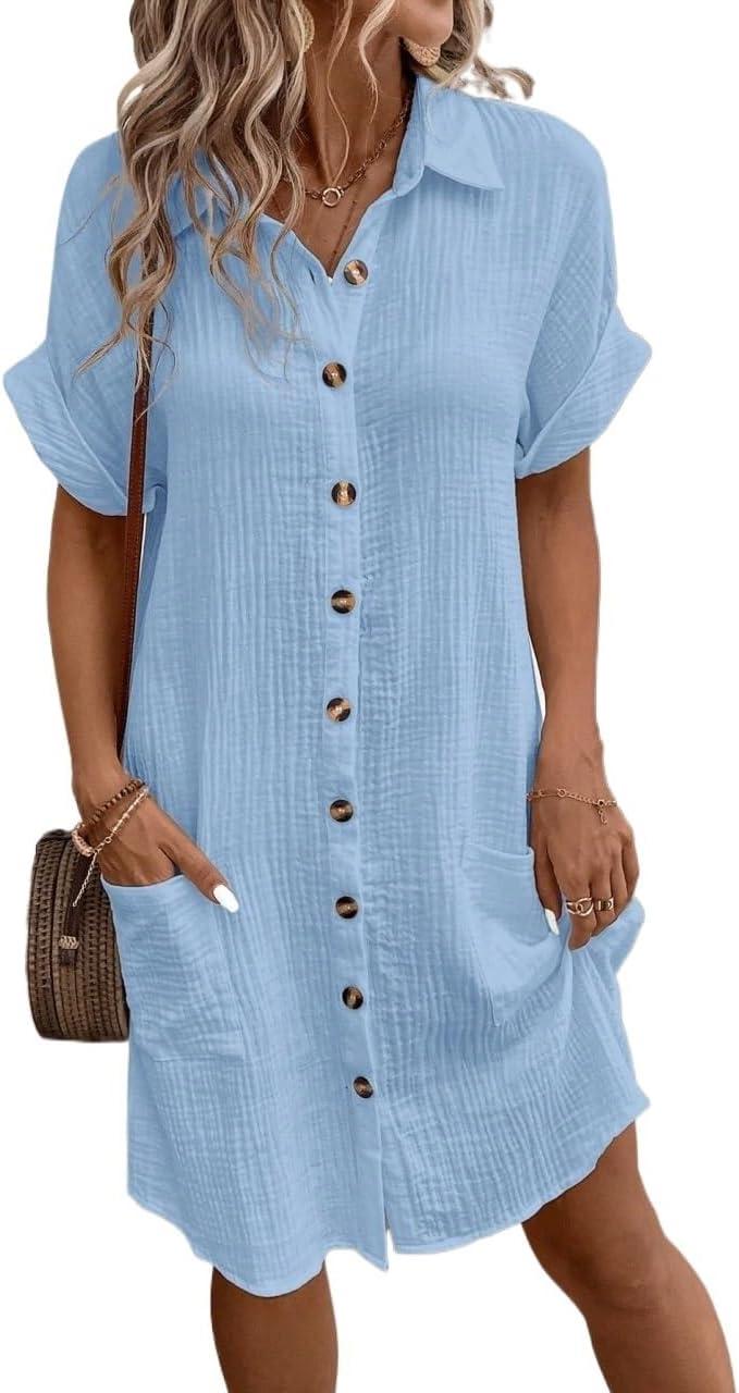 womens casual summer dresses Simple comfortable relaxed Fit cotton Linen Blend Shirt Dress