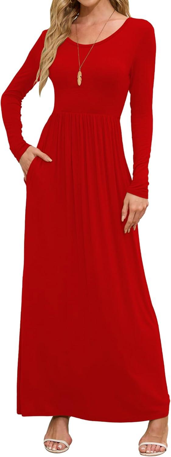 Elegant and Comfortable Long Sleeve Maxi Dress with Pockets