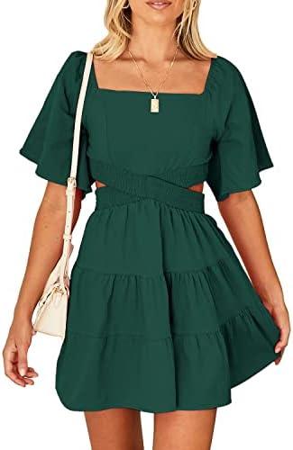 Shy Velvet Women’s Summer Dress Square Neck Short Sleeves Crossover Waist Casual Party Mini Dress