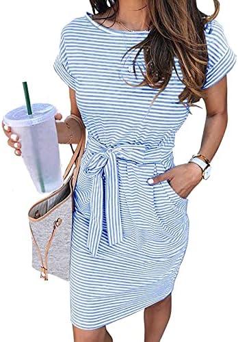 Summer Dresses for Women 2024 Striped Short Sleeve T Shirt Dress Crewneck Mini Dress with Pockets